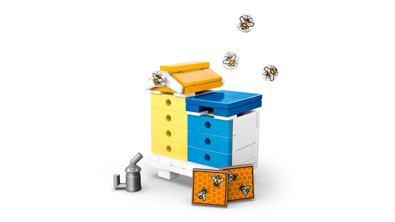 - Biodlarhus med realistiska detaljer: Setet innehåller bikupor som kan öppnas och visa vaxkakan inuti. För att skapa en autentisk biodlarmiljö ingår även en biodlarhatt och en rökpust.