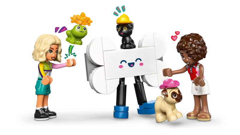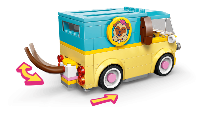 Med 2 minidockor, en kattunge, en hund och en groda, samt charmiga tillbehör, är detta LEGO® Friends-set perfekt för barn som älskar djur och lekfulla berättelser. Bilen i mopsdesign har en svans som viftar när den rullar, vilket gör varje leverans ännu roligare.