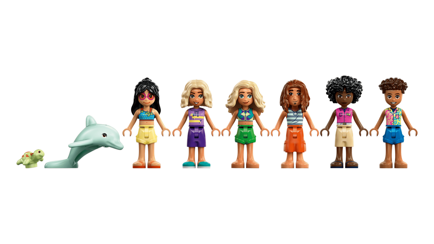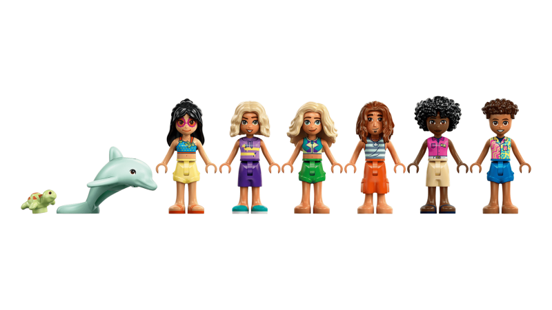 LEGO® Friends Familjesemester på strandresort låter barn från 8 år njuta av kreativa strandäventyr med 6 minidockor, en delfin, en sköldpadda och massor av roliga tillbehör.