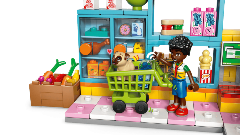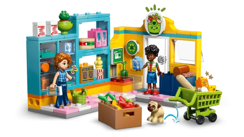 LEGO® Friends Heartlake Citys närbutik – bygg och lek med minidockor, kundvagn och låtsasmat för barn 5+.