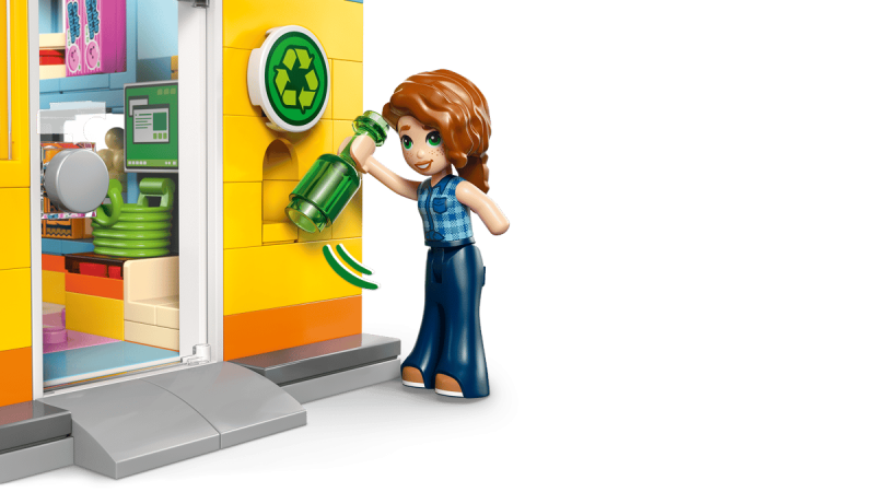 Barn kan fylla på hyllor, handla varor, betala i kassan och återvinna saker, vilket uppmuntrar både fantasi och vardagsinspirerade rollekar. Appen LEGO® Builder ger barn möjlighet att zooma in, rotera och följa instruktioner i 3D, samt spara sina framsteg under byggandet.