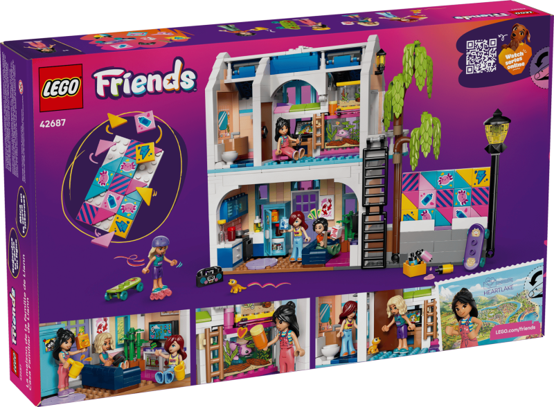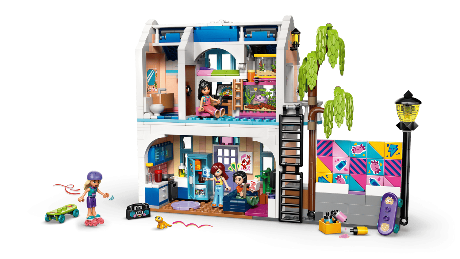 LEGO® Friends Lianns hus™ låter barn från 7 år skapa egna berättelser i Heartlake City. Utforska ett detaljerat dockhus med kök, vardagsrum, sovrum, balkong och trädgård, och prova på Lianns olika hobbyer som skateboard, måleri och djurvård. Setet innehåller 4 minidockor, geckoödla, axolotl och många roliga tillbehör, som skateboardar, konstmaterial, bandspelare och terrarier.