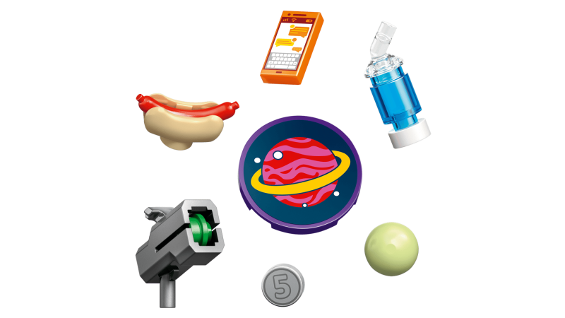 Förutom huvudattraktionerna finns detaljer som dansmaskin, studsmatta, varmkorv, slushies, tuggummiautomat, telefon, kassaapparater och ett mynt, vilket uppmuntrar till kreativt berättande och roliga rollspel.
