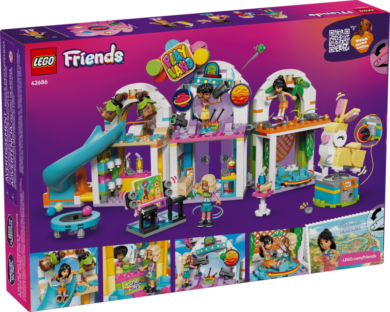 LEGO® Friends Rolig inomhuslekplats (42686) är ett actionfyllt byggset som låter barn från 7 år skapa oändliga äventyr med 3 minidockor – Liann, Nova och Sonia – och massor av roliga tillbehör.