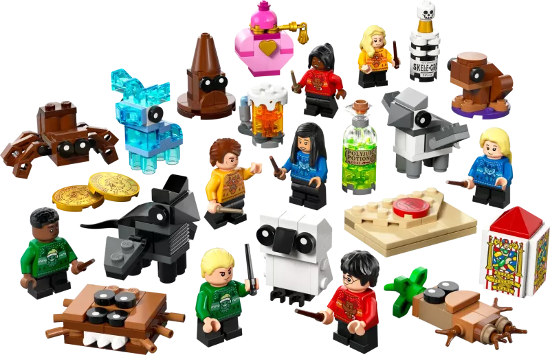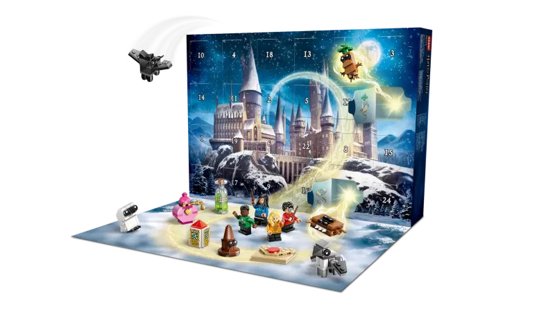 Bakom varje lucka väntar minifigurer och magiska varelser som Vingfåle, Aragog och en patronushjort. Kalendern innehåller dessutom åtta LEGO-minifigurer av kända karaktärer som Harry Potter™, Cho Chang™, Draco Malfoy™, Luna Lovegood™ och fler – alla klädda i Hogwarts™ jultröjor och med sina trollstavar.