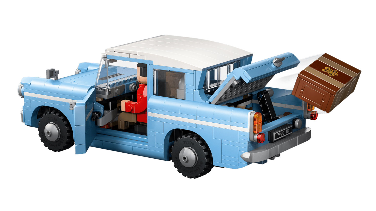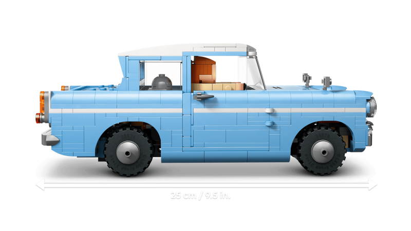 Återskapa den oförglömliga flygturen till Hogwarts med familjen Weasleys förtrollade Ford Anglia™. Placera Harry och Ron i bilen tillsammans med Hedwig™ och väck filmscenerna till liv. Den autentiska designen och de genomtänkta detaljerna gör modellen lika imponerande att visa upp som att leka med.