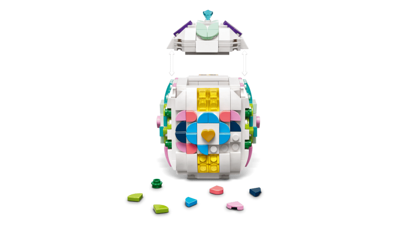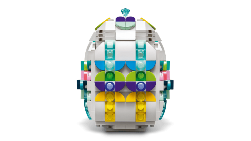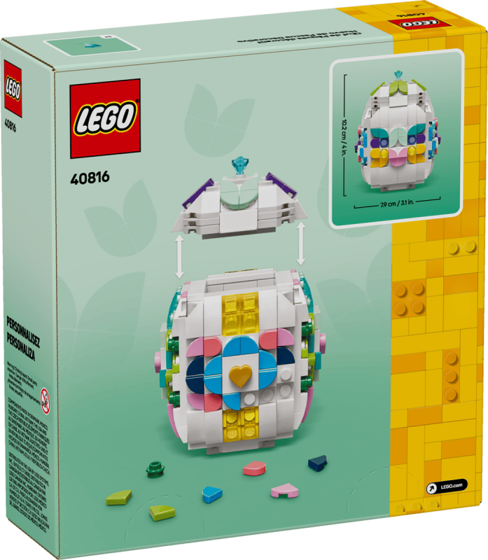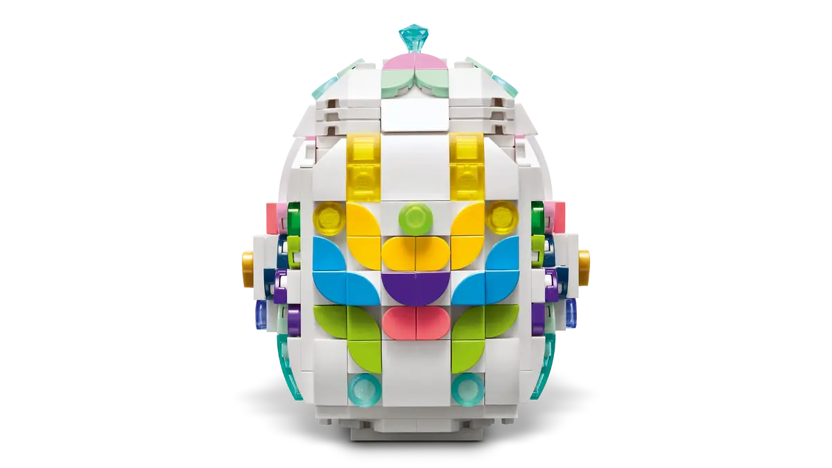 Påskägget har en platt botten för enkel uppvisning och en öppningsbar topp som kan tas bort för att förvara extra LEGO-delar eller kanske en liten påsköverraskning. Perfekt för att bygga tillsammans med vänner eller familj och låta fantasin flöda med egna färgglada designer.