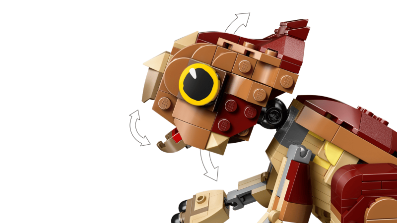 - Rörliga armar, ben, huvud och svans samt öppningsbar mun för varierad lek
