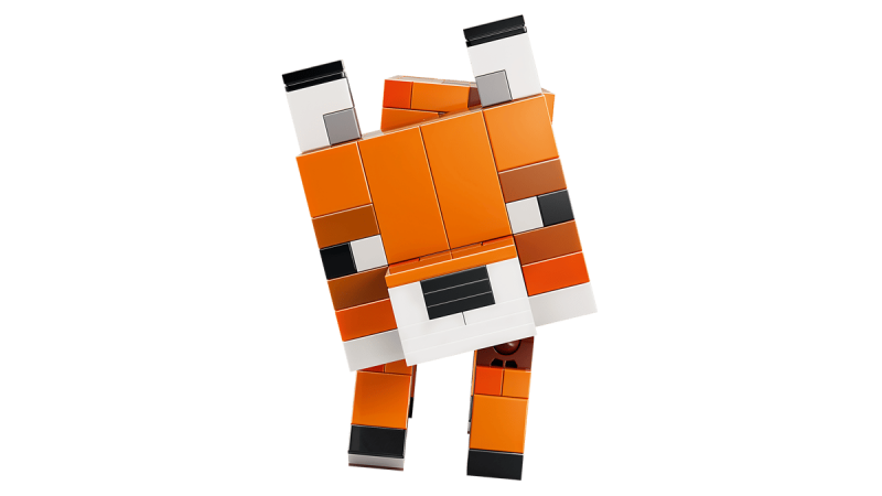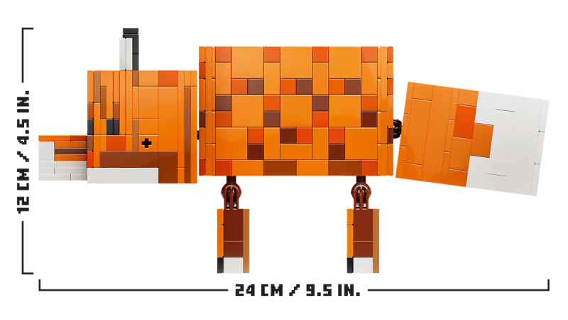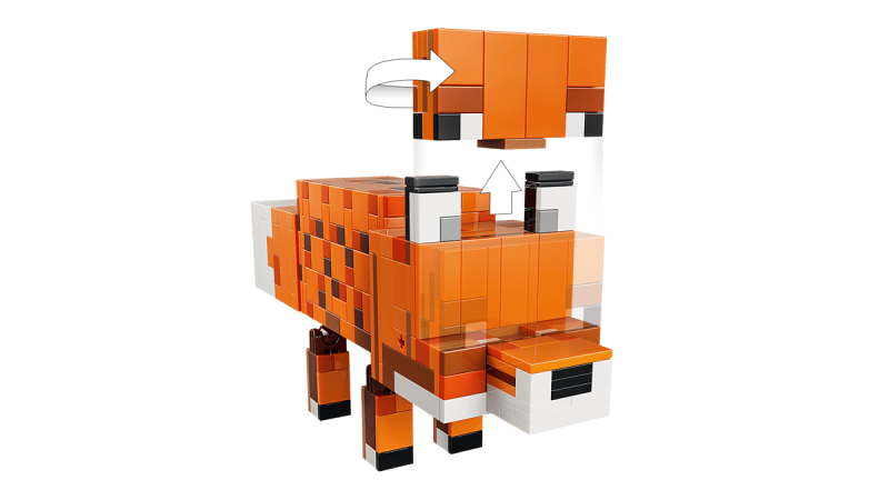 - Byggbar Minecraft® räv med rörliga ben, vridbar hals, rörligt huvud och vändbara ögon