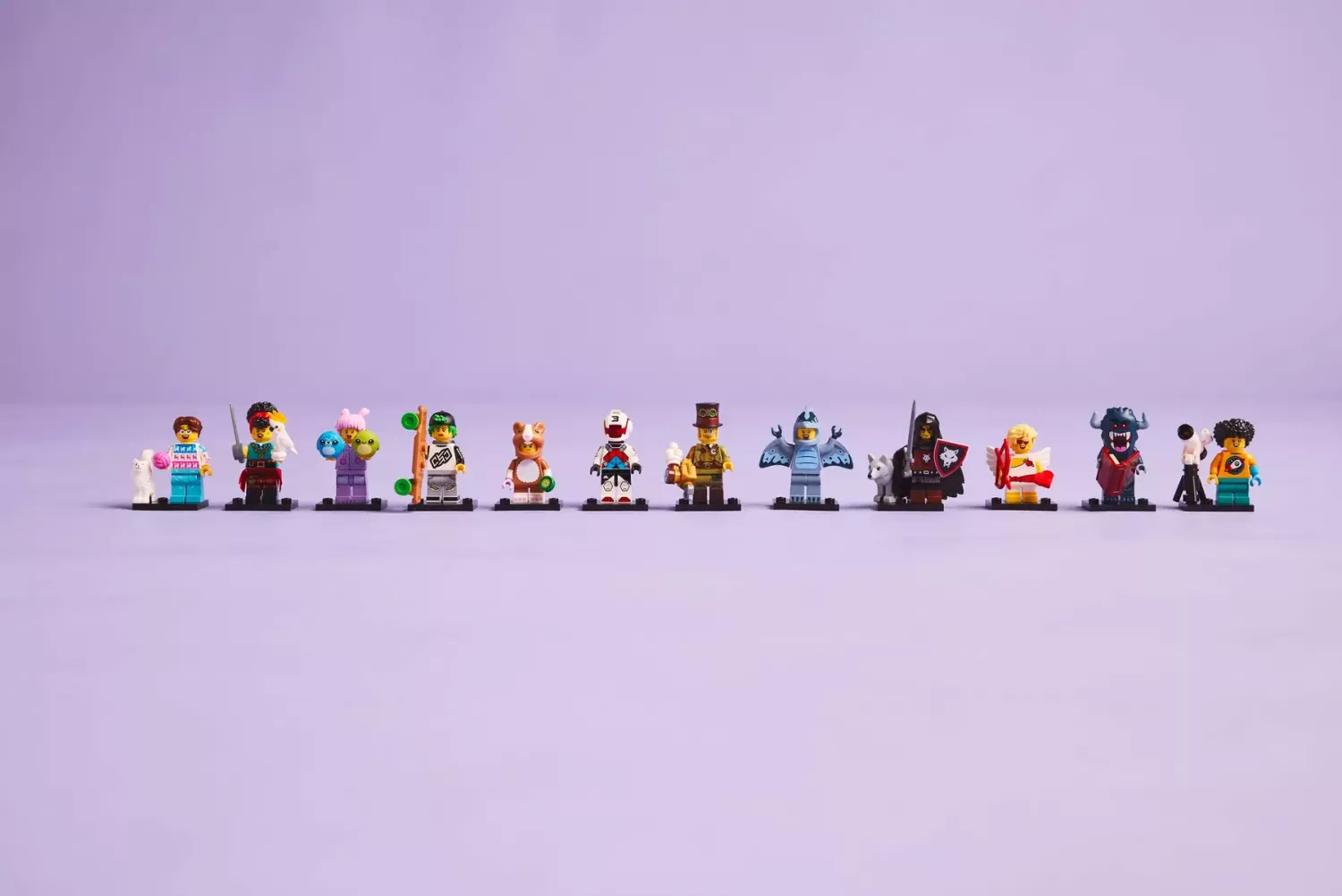 De flesta minifigurerna har minst ett autentiskt tillbehör som förstärker leken, t.ex. piraternas kvartermästare med svärd och papegoja, nattmonstret med bok och Amor med pilbåge och hjärta. Figurerna är detaljerade och färgglada, vilket gör dem perfekta för samling och lek.