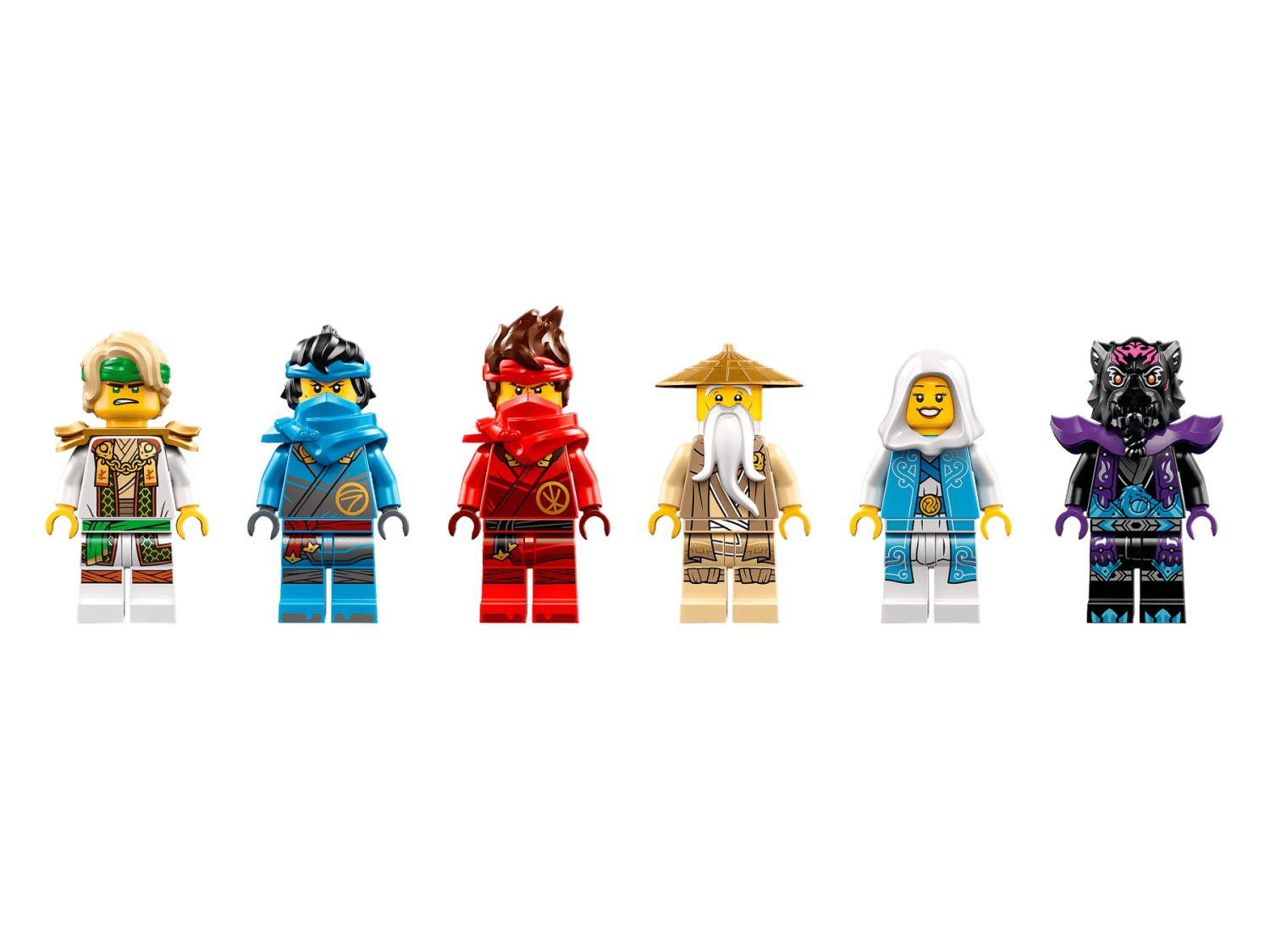 - 6 NINJAGO® minifigurer: Master Lloyd, Master Wu, Nya, Kai, Euphrasia och Lord Ras