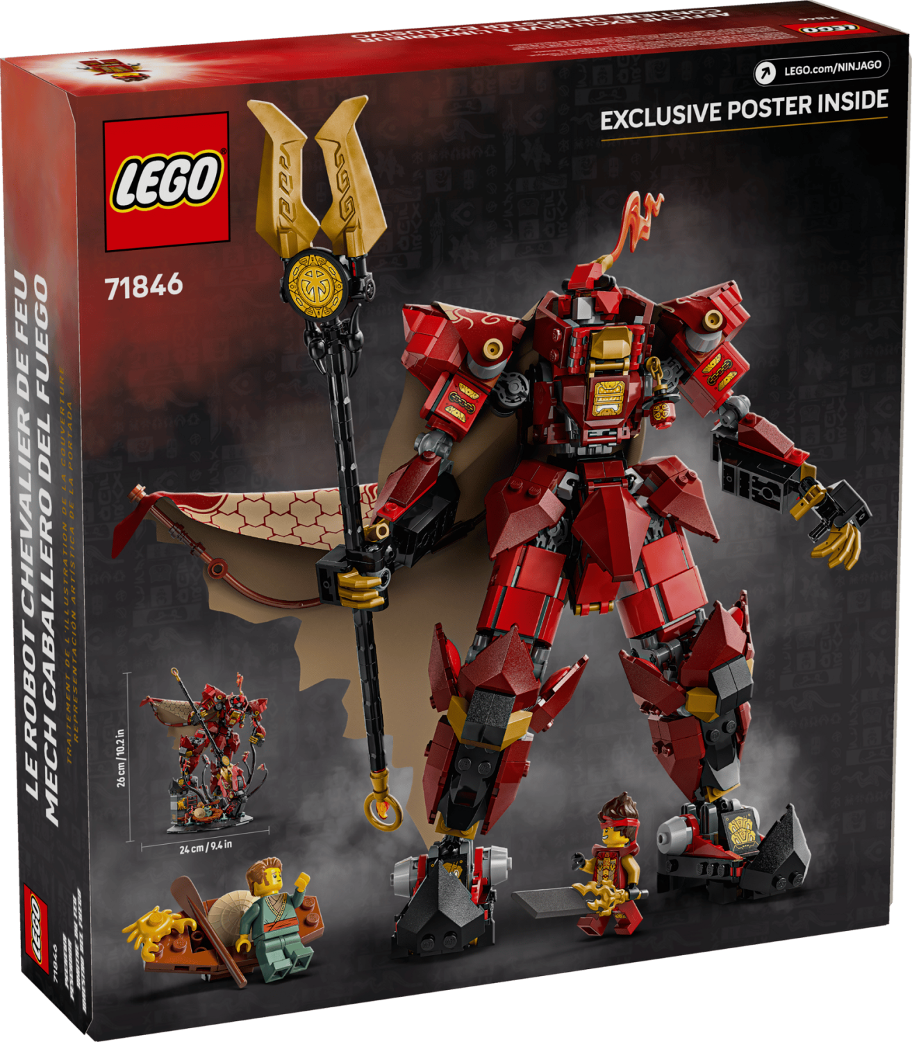 Bygg LEGO® NINJAGO® Eldriddarroboten – dramatisk robot mot monster med 2 minifigurer och 996 delar för fans från 14 år.
