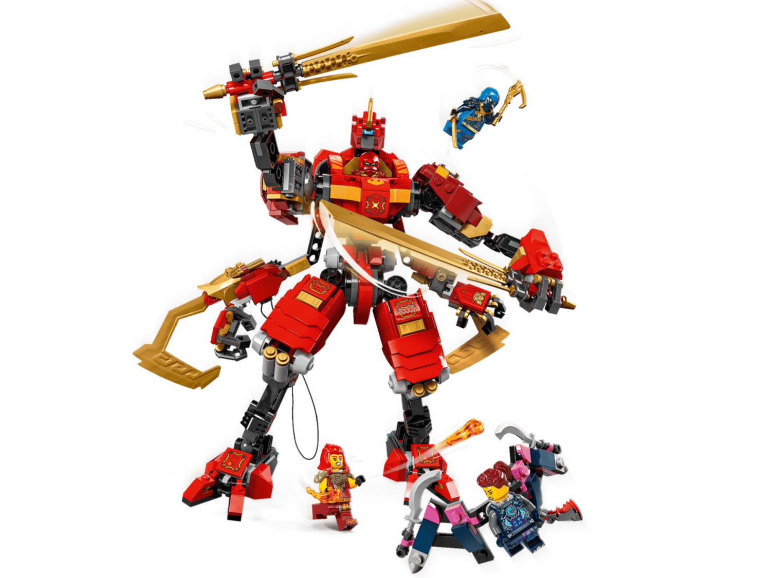 Kais klätterrobot (71812) låter barn från 9 år iscensätta spännande strider i skuggornas skog från säsong 2 av tv-serien NINJAGO® Drakarna vaknar. Byggleksaken innehåller en spektakulär röd robotfigur med rörliga armar, ben, överkropp, huvud och fötter, samt 2 stora katanasvärd och en cockpit med plats för en minifigur.