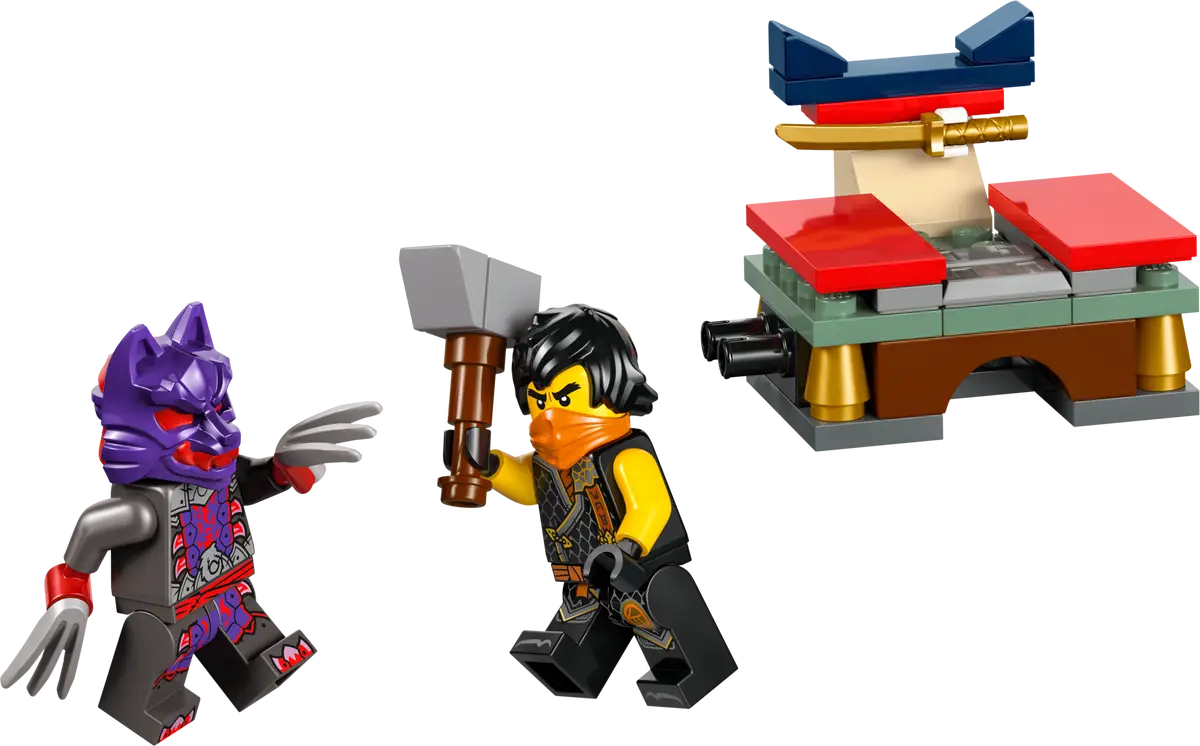 Med detta ninjalekset kan barn iscensätta strider mellan Cole, som är beväpnad med ett katanasvärd, och en krigare i vargmask med klor för att vinna en gyllene stav.