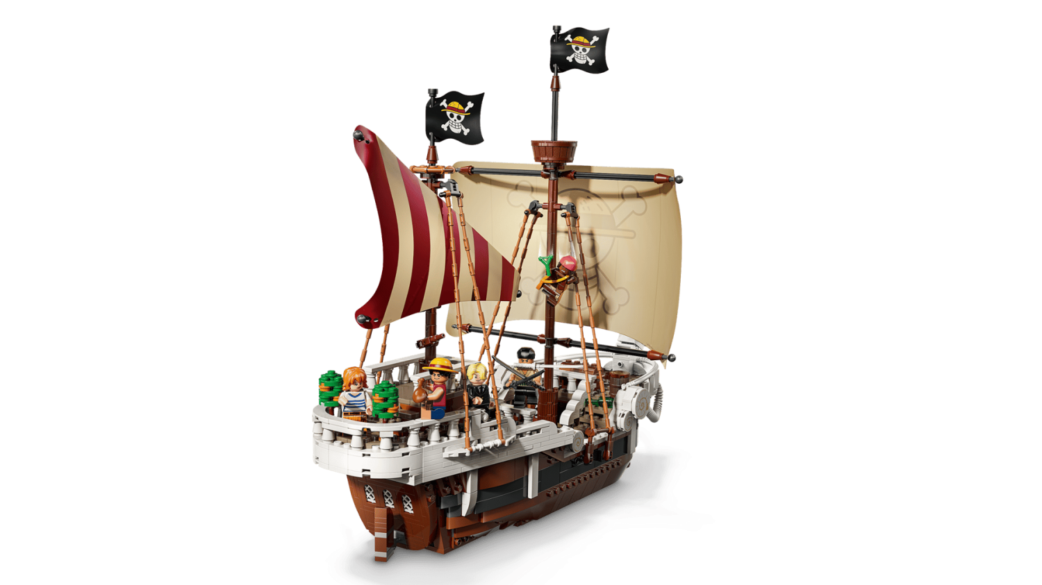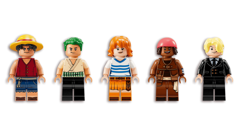 - Innehåller 5 minifigurer: Luffy, Zoro, Nami, Usopp och Sanji