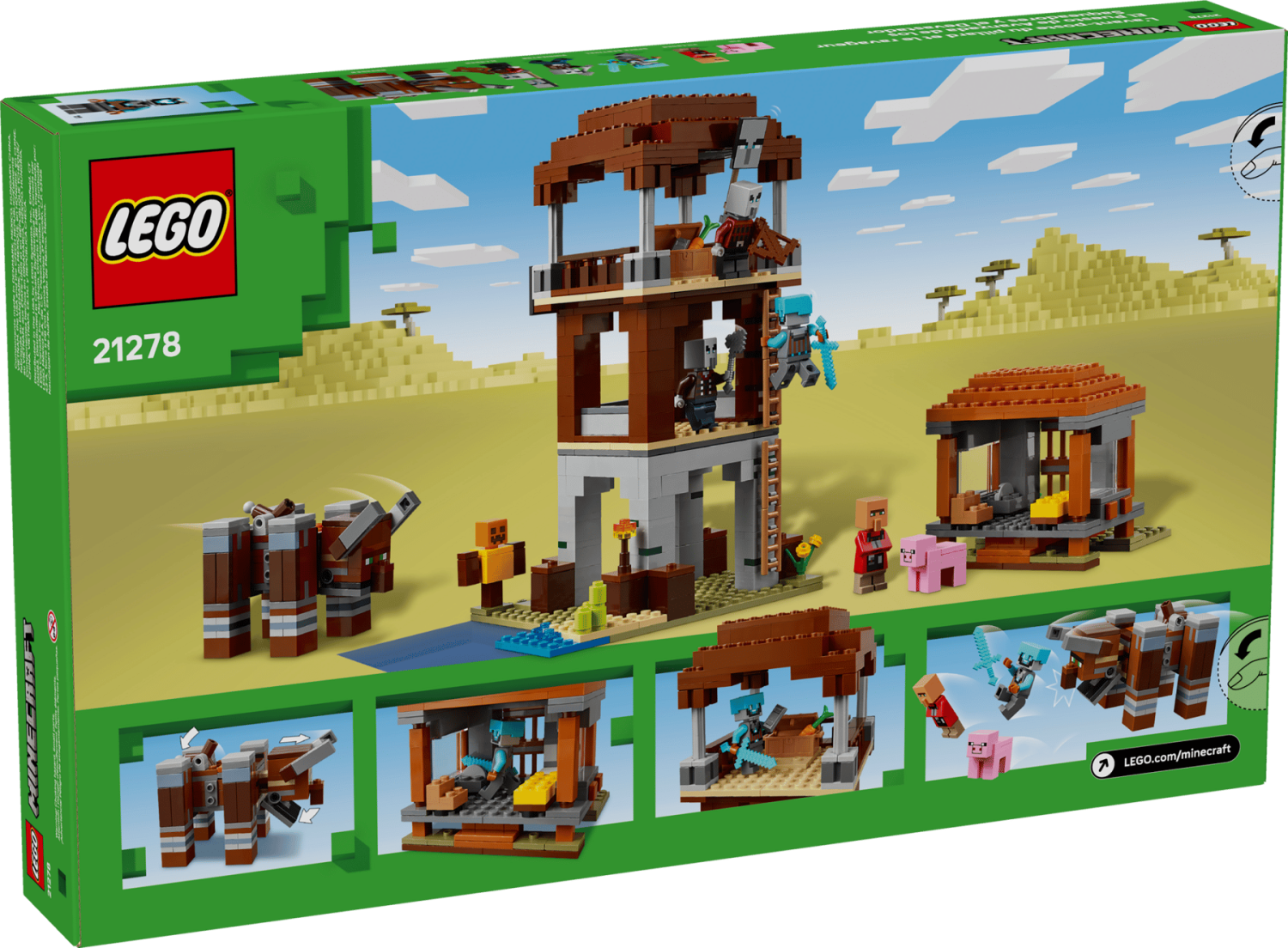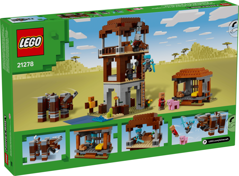 LEGO® Minecraft® 21278 Plundrarvakttorn och vildtjur med 4 minifigurer, byggbar vildtjur, gris och interaktiv lek från 9 år.