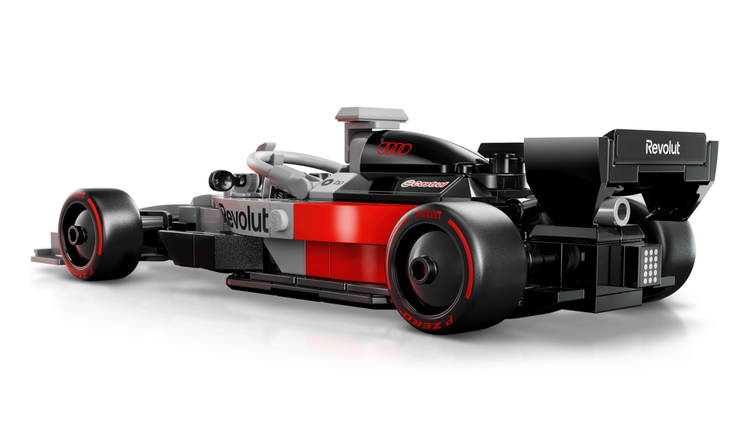 Den detaljerade LEGO® F1®-racern har cockpit, bakre vinge, fjädringssystem fram, Pirelli-däck med tryck och autentiska sponsorlogotyper. Setet innehåller även en förarminifigur i Audi-dräkt och hjälm som kan placeras i cockpiten för spännande tävlingar. När bygget är klart kan modellen ställas ut på hylla, skrivbord eller nattduksbord som en uppvisningsbil.