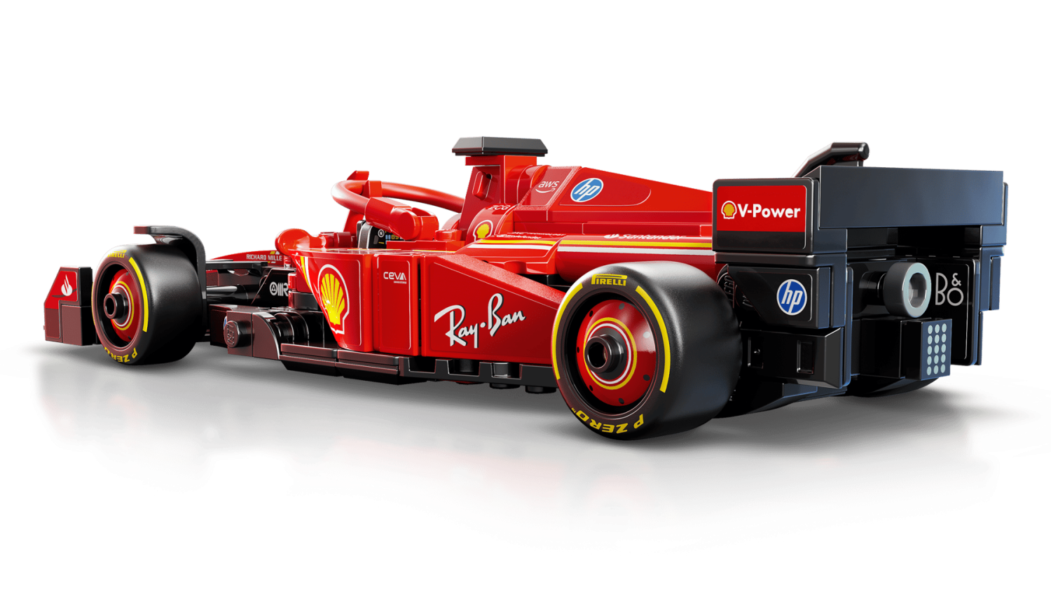 Ferrari SF-24 är fångad i LEGO-form med en precision som imponerar. Modellen har alla de karaktäristiska detaljerna från den riktiga racerbilen: den aerodynamiska bakvingen, den distinkta säkerhetsbågen (Halo) som kan lyftas för att öppna cockpiten, samt realistisk länkarmsfjädring. För att ge modellen den sista finishen ingår autentiska sponsordekaler och de nya, bredare bakdäcken med det ikoniska ”Pirelli”-trycket.