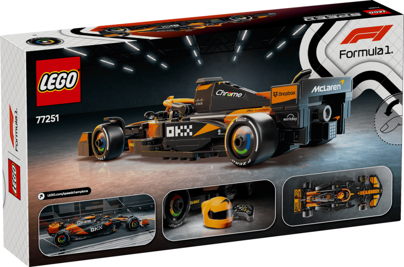 Setet innehåller en förarminifigur i McLaren-dräkt med bevingad hjälm som kan placeras i cockpiten. F1-modellen har öppningsbar cockpit, bakvinge, länkarmsfjädring, sponsordekaler och breda bakdäck med ”Pirelli”-tryck. Appen LEGO Builder erbjuder 3D-instruktioner, zoom- och rotationsfunktioner samt möjlighet att spara framsteg.