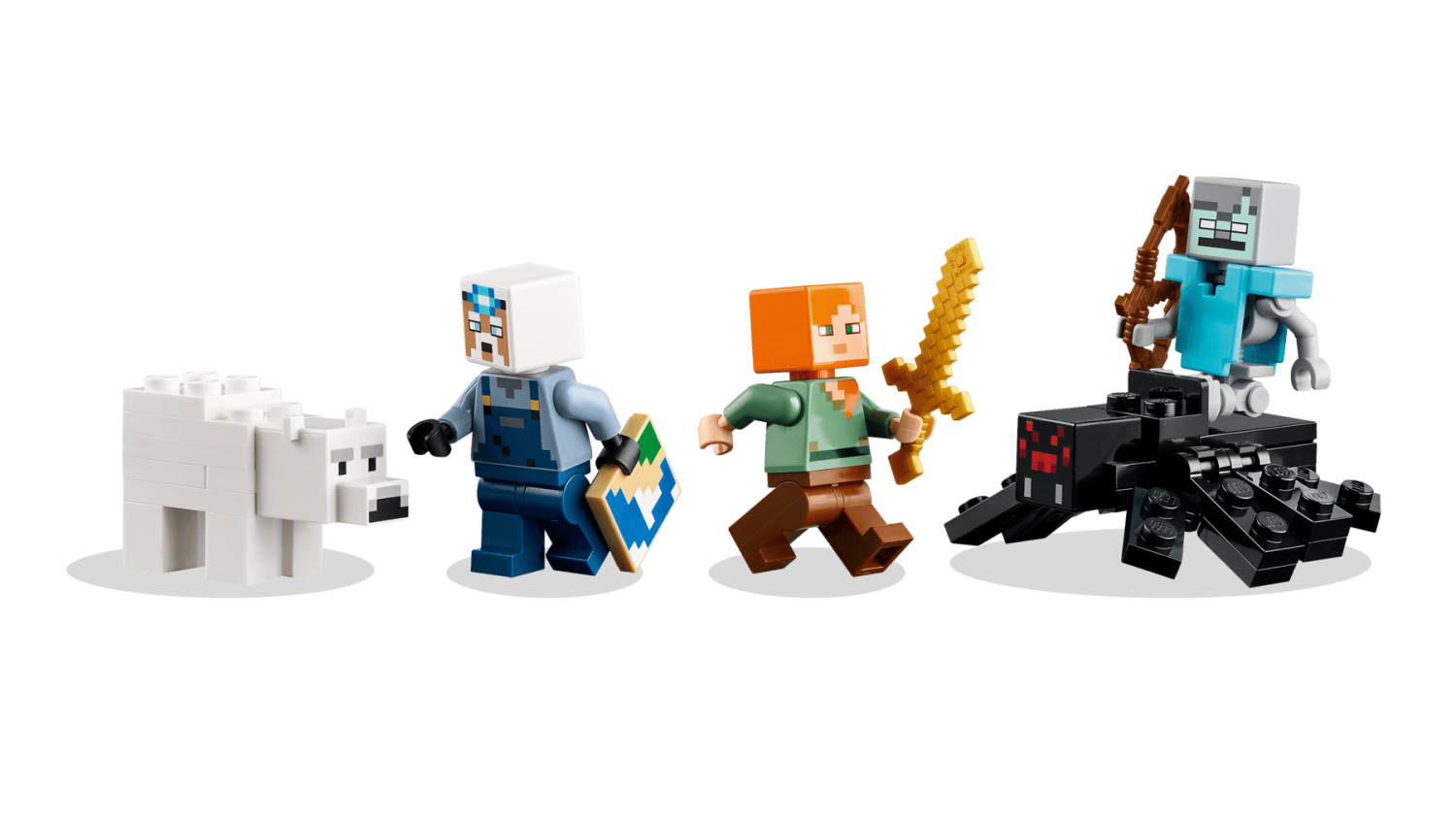 - Innehåller 3 minifigurer: Alex, gruvarbetare, spindeljockey, samt spindel och isbjörnsunge