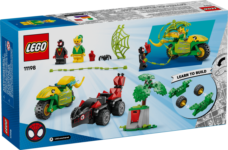 LEGO Spidey Spins och Electros jakt med dinosauriefordon 11198