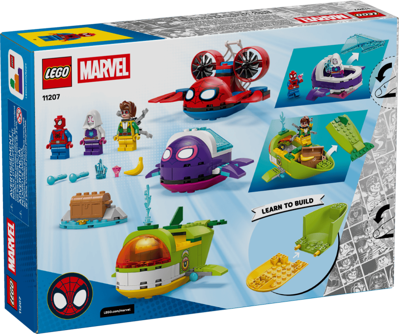 LEGO Marvel Spidey: undervattensfarkoster (11207) är ett byggset med 154 delar som låter barn från 4 år leka undervattensäventyr med Spidey, Ghost-Spider och Doc Ock samtidigt som kreativitet och problemlösning utvecklas.