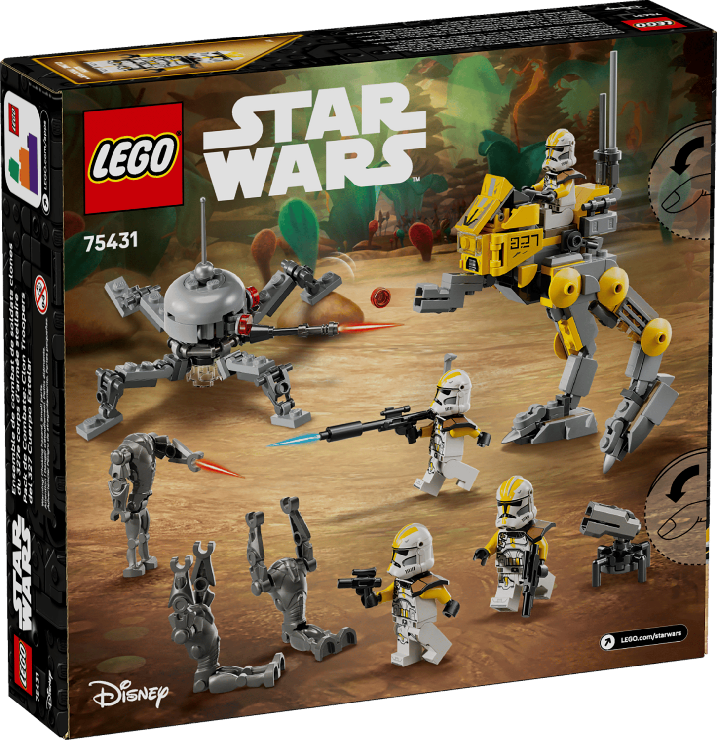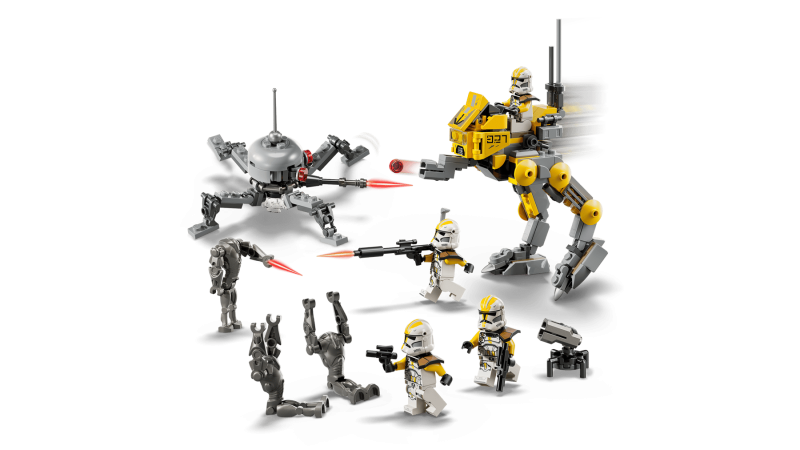 Setet innehåller 4 LEGO® Star Wars™ minifigurer av klonsoldater från 327:e stjärnkåren och 3 superstridsdroider. Leksetet har en AT-RT walker med cockpit för en minifigur, knoppkanon, förvaring för strålgevär och kikare samt ett kanontorn för klonsoldater. Spindeldroiden rör sig och ger möjlighet till actionfyllda stridsscener. Med appen LEGO Builder kan barn zooma in, rotera och interagera med byggmodellen digitalt.