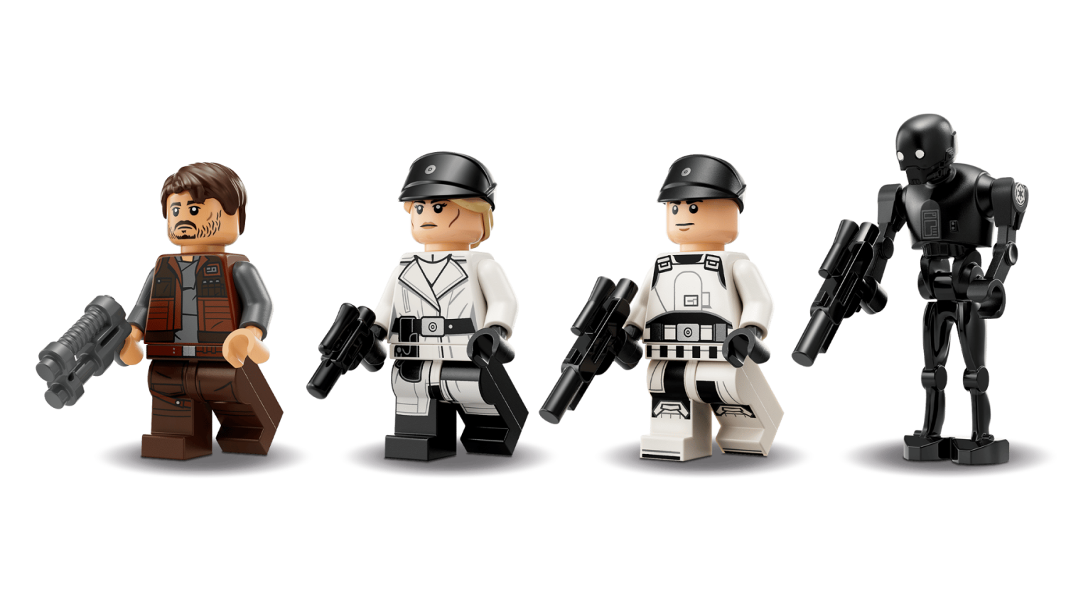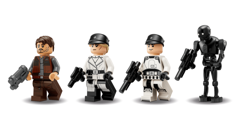 Medföljer gör 4 LEGO® Star Wars™ karaktärer: Cassian Andor, Dedra Meero, en taktisk ISB-agent och droiden K-2SO, var och en med sina vapen. LEGO Builder-appen erbjuder 3D-instruktioner som låter barn zooma, rotera och följa sina framsteg medan de bygger.