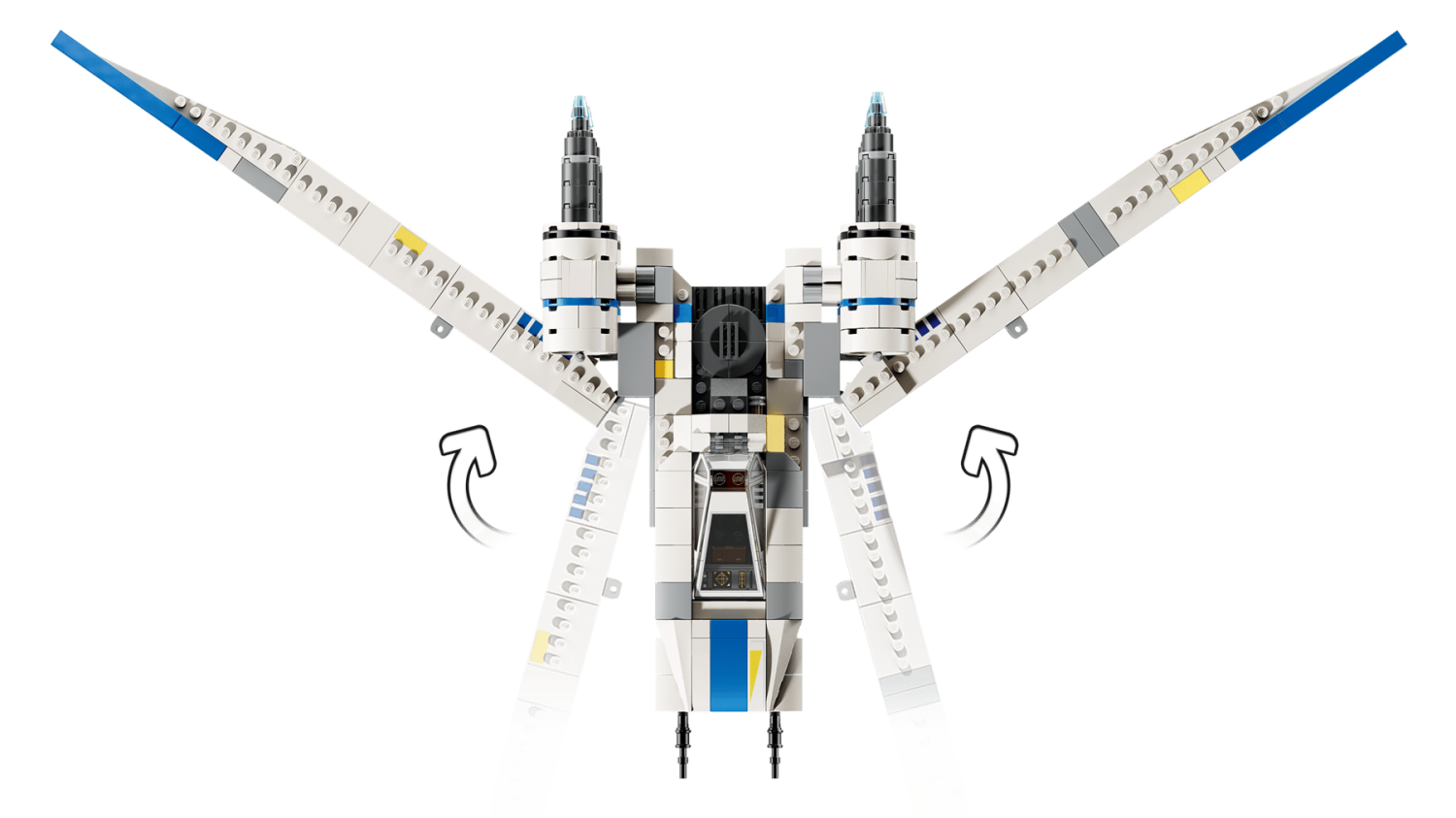 LEGO® Star Wars Rebel U-Wing Starfighter med 4 minifigurer, vridbara vingar och fjädermekanisk kanon, från 8 år.
