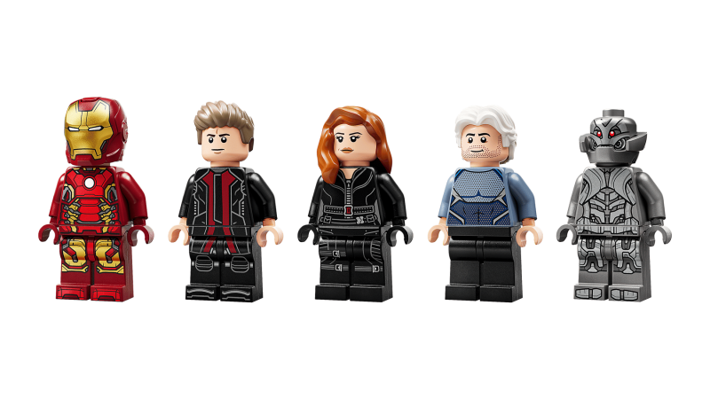 Setet innehåller 5 LEGO® minifigurer: Black Widow med motorcykel, Iron Man, Quicksilver, Ultimate Ultron och Hawkeye med pil och båge. Minifigurerna kan fästas på flera ställen på Quinjeten.