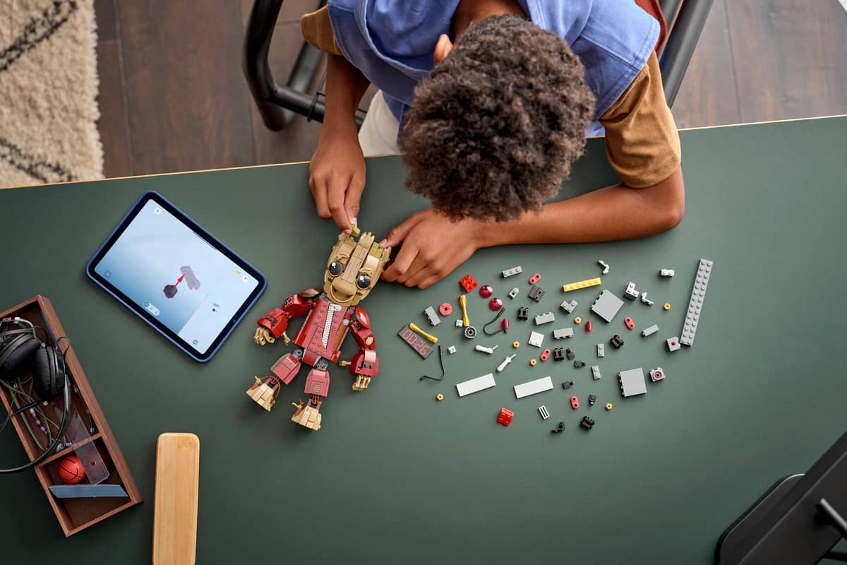 Bygg och lek med LEGO® | Marvel Groot i Ravager-kläder, en rörlig Baby Groot-figur för barn från 10 år.