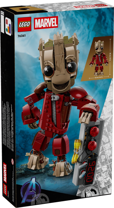 LEGO® | Marvel Groot i Ravager-kläder (76341) låter barn från 10 år återuppleva spännande Marvel-äventyr med en helt ledad Baby Groot-figur. Setet innehåller 604 delar och erbjuder dynamisk lek och uppvisning med rörliga axlar, armar, fingrar, höfter, fötter, hals och justerbara ögonbryn för olika ansiktsuttryck.