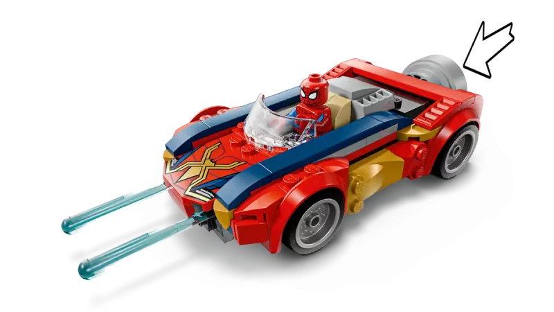 Spider-Mans bil är utrustad med en utlösare baktill som avfyrar två kanoner framåt, vilket ger barnen spännande rollspel. Byggsetet kan användas tillsammans med LEGO Builder-appen för 3D-instruktioner som gör byggandet enkelt och roligt, även för yngre barn.