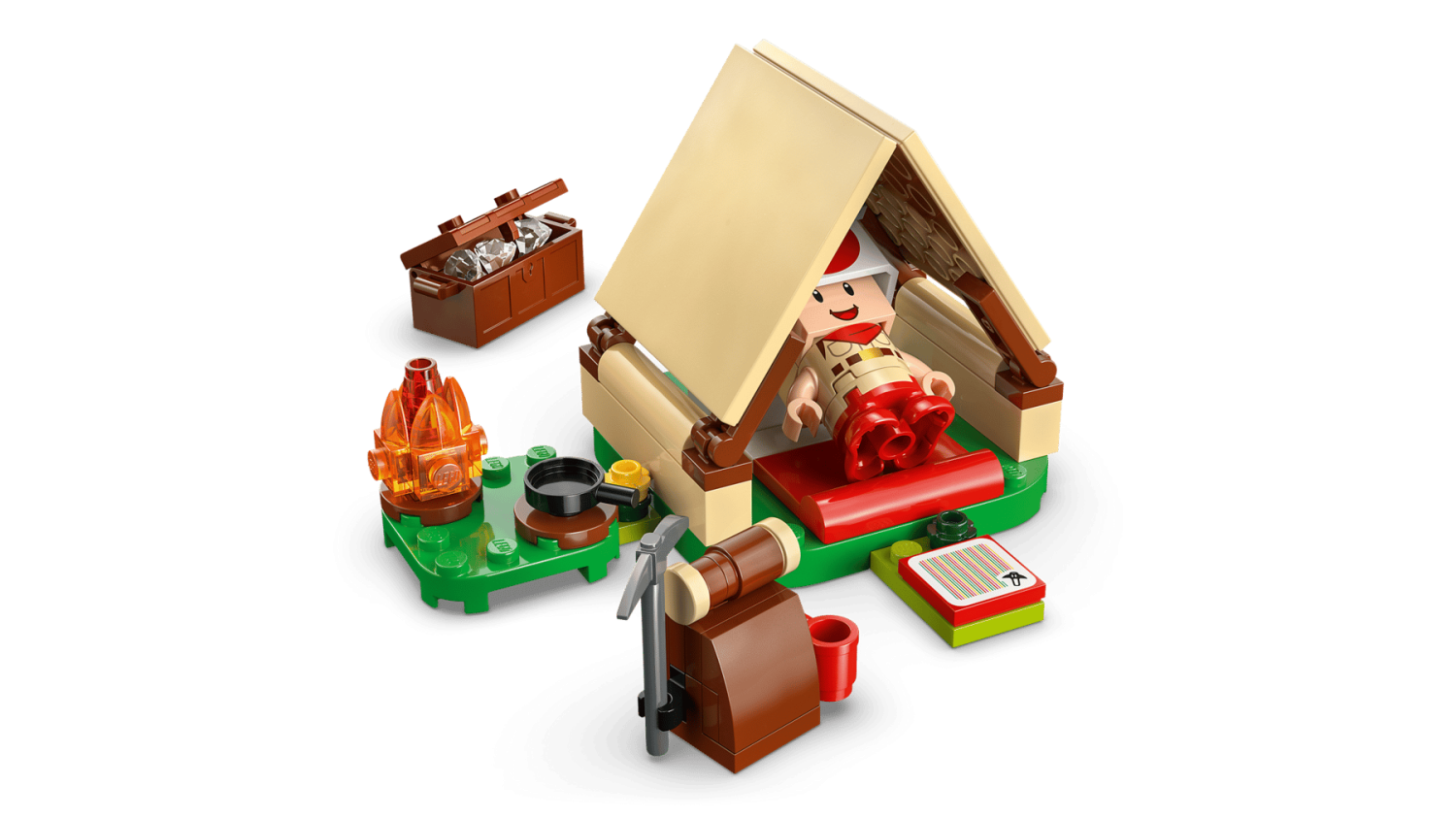 Bygg Captain Toads läger med tält, bro, skattkista och 3 LEGO® Super Mario™ figurer – interaktiv lek för barn från 6 år.