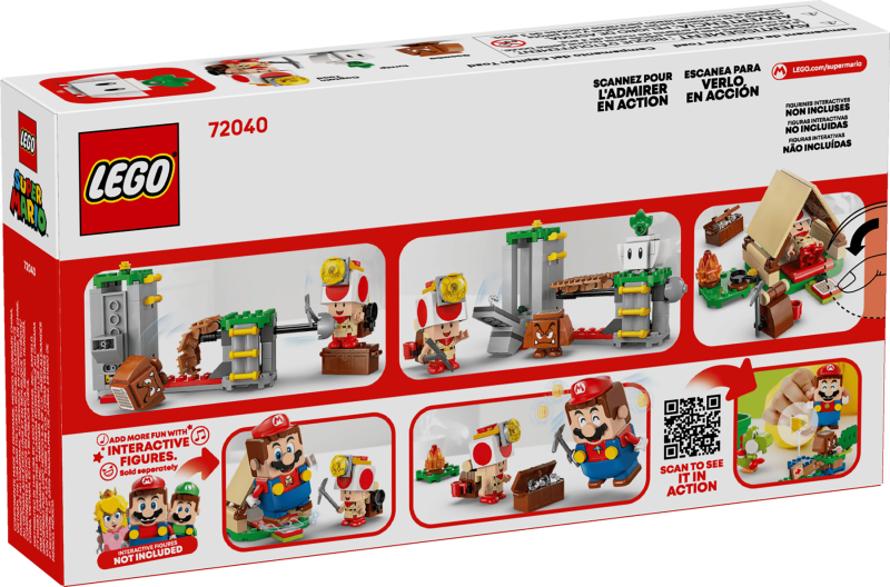 Setet innehåller 3 LEGO® Super Mario™ figurer: Captain Toad, en Goomba och en rova, plus tillbehör som byggbar ryggsäck, hacka och stekpanna. För ännu mer interaktiv lek kan barn lägga till LEGO® Mario™, LEGO® Luigi™ eller LEGO® Peach™ (säljs separat, set 71439, 71440, 71441 eller 72043) för digitala reaktioner när de hoppar på actiontaggen på tältet eller besegrar fiender. LEGO® Super Mario™ set kan kombineras med andra set i serien för fler banor och utmaningar.