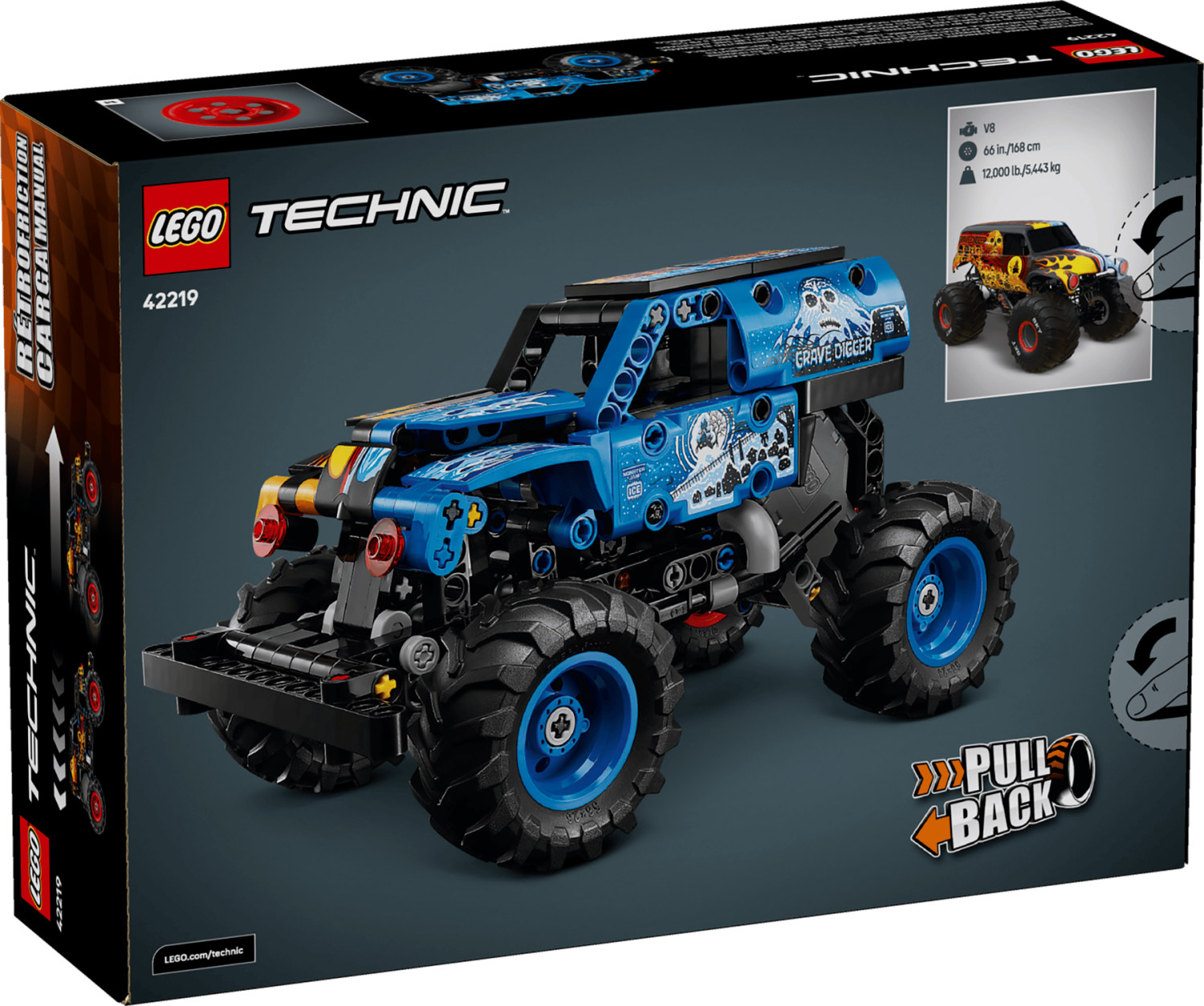 LEGO® Technic Monster Jam™ Grave Digger™ eld och is ger barn från 7 år actionfyllda lekstunder med en pull back-monstertruck. Setet innehåller 263 delar och har realistiska designdetaljer inspirerade av den verkliga Grave Digger™ trucken, med eld och lågor på ena sidan och isdesign på andra sidan.