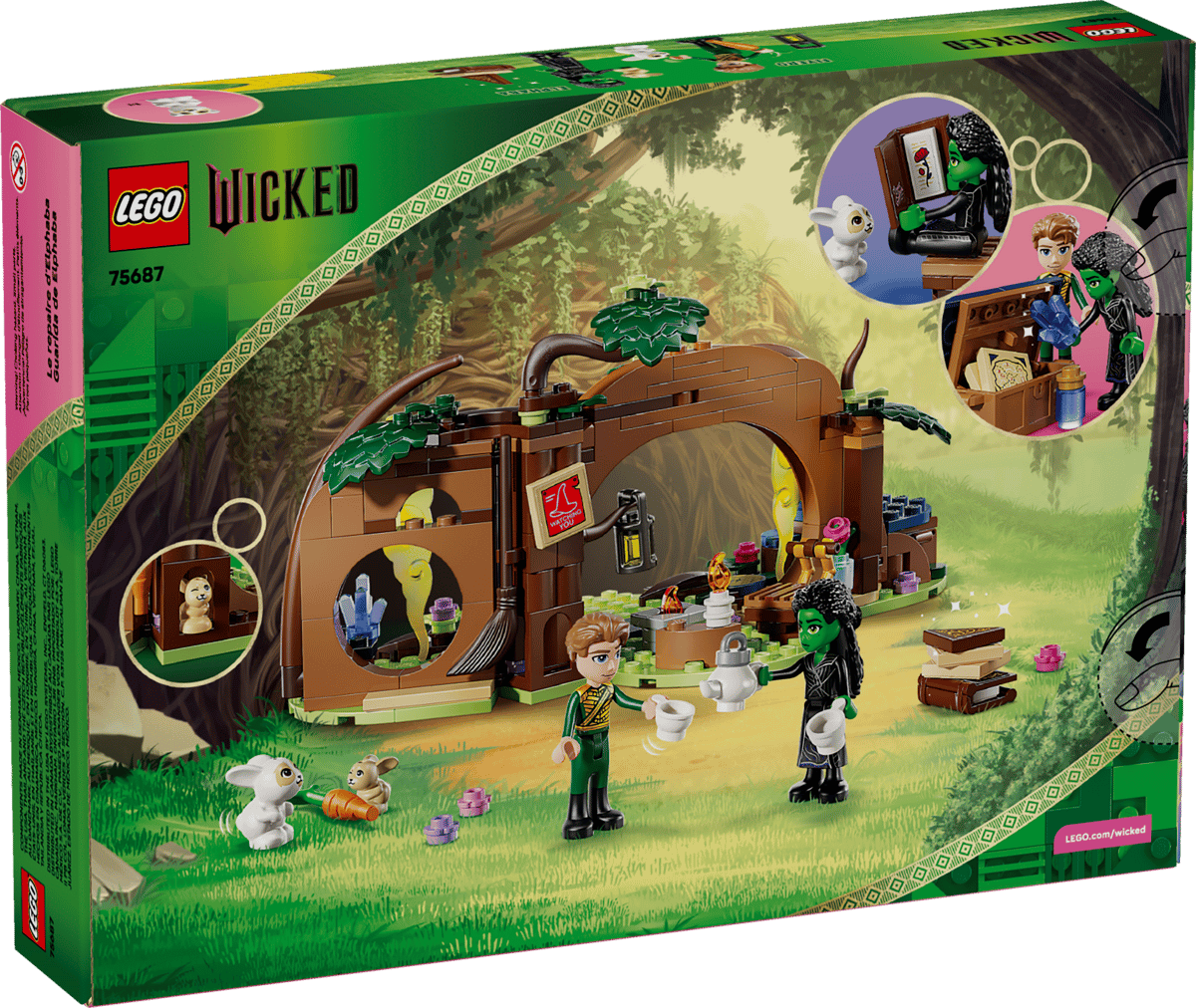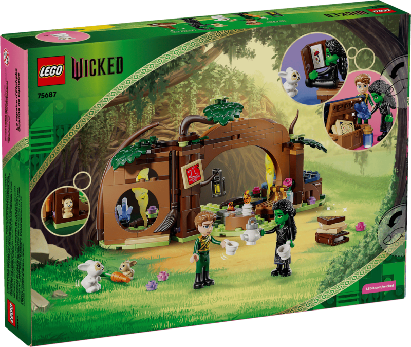 LEGO® Wicked Elphabas Retreat (75687) tar barn in i en förtrollande värld inspirerad av filmen Wicked. Med detta set kan flickor, pojkar och filmfans bygga Elphabas gömställe i skogen och iscensätta magiska scener med minidockor, djurfigurer och filmkända detaljer. Fantasifulla rollspel blir verklighet när barn tar hand om figurerna och återupplever stämningsfulla filmögonblick.