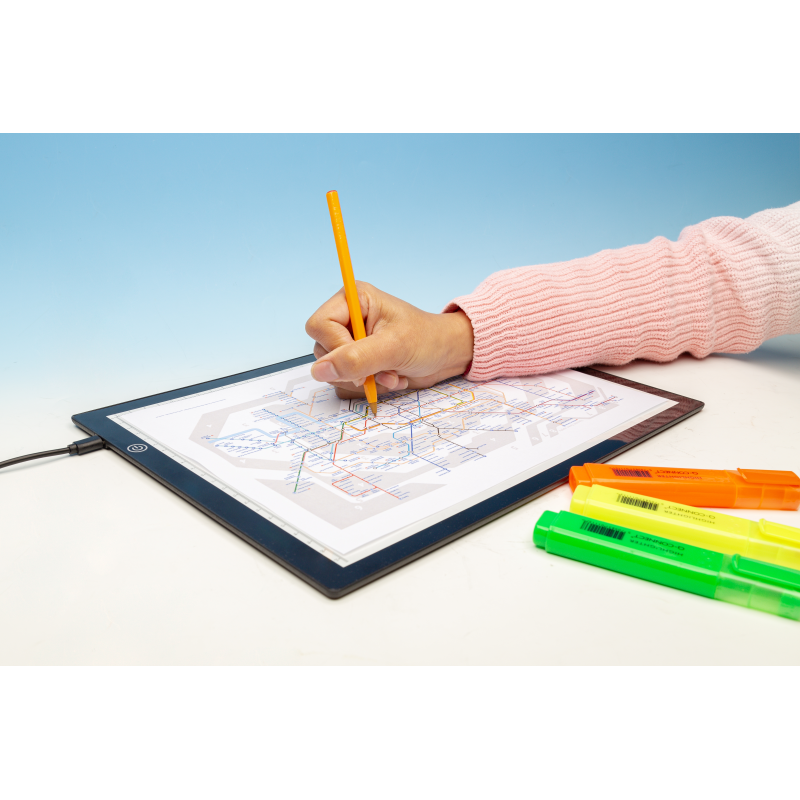 Supertunn A4 LED-lightbox – jämnt ljus för att spåra, rita av och applicera dekaler på modeller och figurer.