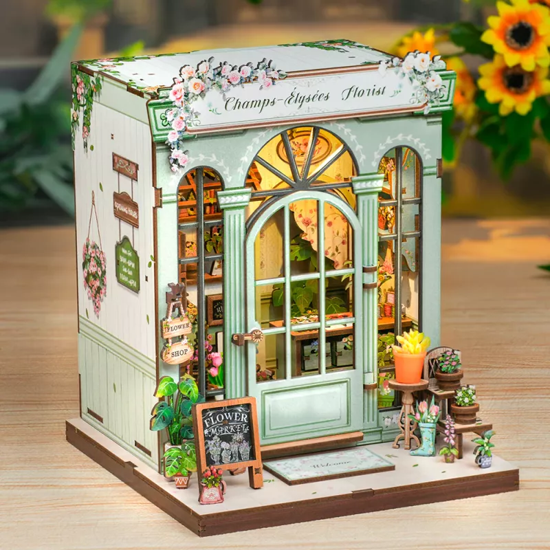 Champs-Élysées Florist – ett charmigt DIY bokhörn som låter dig skapa en fridfull blomsterhörna mitt i staden. Plocka buketter med blommande prästkragar och njut av vårens charm, medan detaljerade blomsterarrangemang, små hyllor och ett mysigt arbetsbord skapar en harmonisk och levande miniatyrvärld.