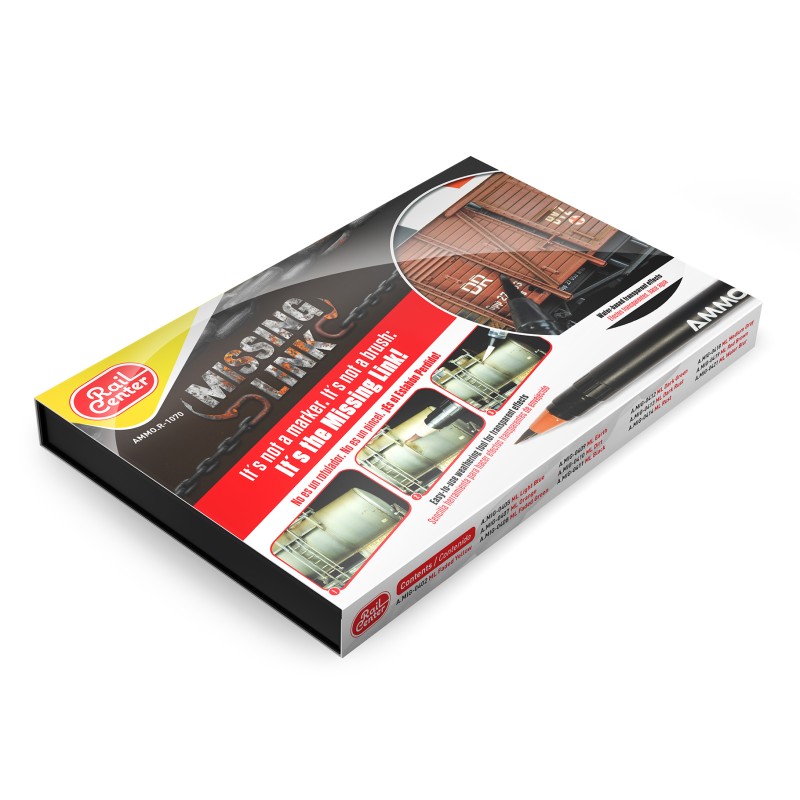 Missing Link Brush Tip markers är utvecklade för modellbyggare som vill uppnå realistiska och detaljerade väderingseffekter snabbt och enkelt. Tack vare transparenta pigment, ergonomisk design och möjlighet att blanda eller ta bort färg med vatten kan du skapa filter, skuggor och smuts som smälter naturligt in i underliggande färger.