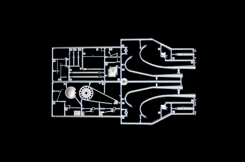 Modellen är förformad i originalfärger med förkromade delar, och är dessutom utrustad med fungerande fjädring och gummidäck.