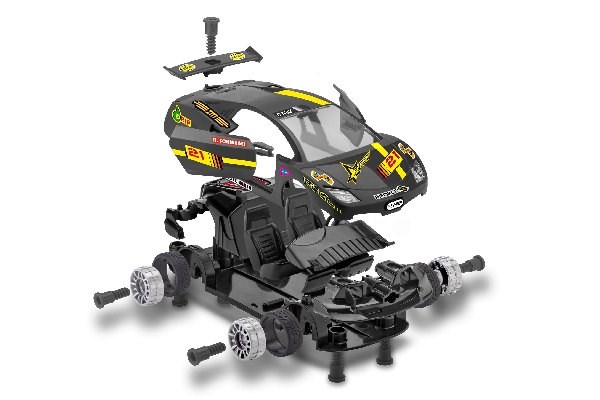 "Start free for number 21! Drive your black racer onto the starting grid and show them all the way. The big spoiler ensures that you stay on the racing track even at high speed. Junior racers from 4 years of age can enter the world of model car construction screwing their model together with the screwdriver supplied without any effort. The colourful and easy to understand construction manual guides them step by step to the finished model. - Easy to assemble - Robust parts - Able to be taken apart - Moveable doors and transparent engine cover - Many interior details - Replica engine - Add finishing touches using the stickers included"