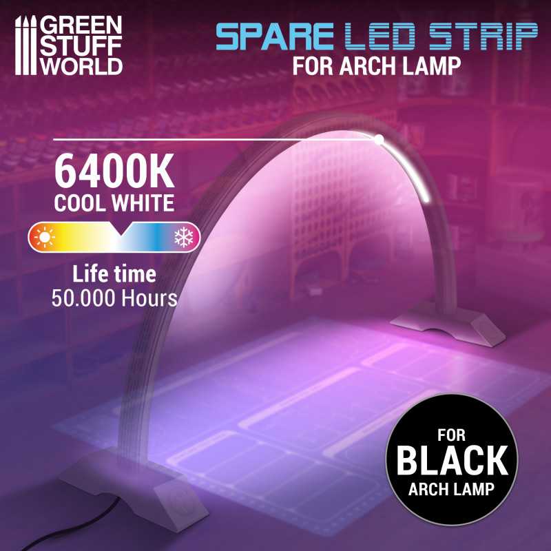 Replacement LED strip with 78 cool white 6,400k bulbs, especially for the Green Stuff World arc lamp.