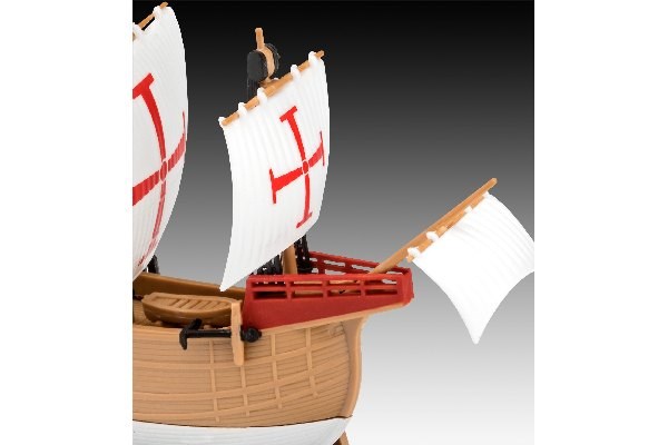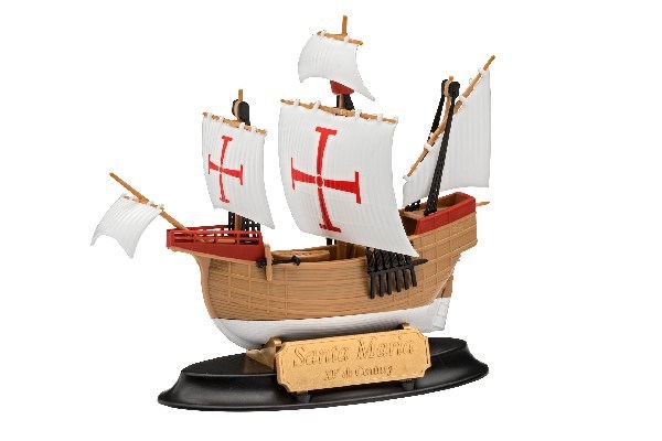 "An easy to build model construction kit of the legendary Santa Maria. The ship with which Christopher Columbus discovered America in 1492. This was one of the greatest expeditions in history. - Wood structured decking - Structured Sails - Anchor - Rowing boat - Shrouds - Display stand Handicraft fun with great results for everyone age 10 or older. Quick results are guaranteed with the innovative easy-click system: Multi-colour, precisely made components fit together for a sturdy connection and decorated with stickers. No painting necessary! The model can also be painted, which makes it completely unique. A recommendation with up to 5 colours is included in the instruction manual."