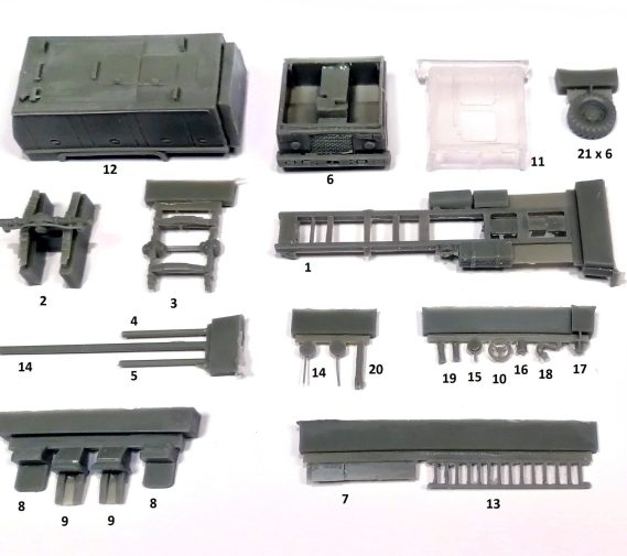 - Autentiska militära färger: olivgrön med markeringar, vissa enheter med splintercamouflage och gula stenciler.