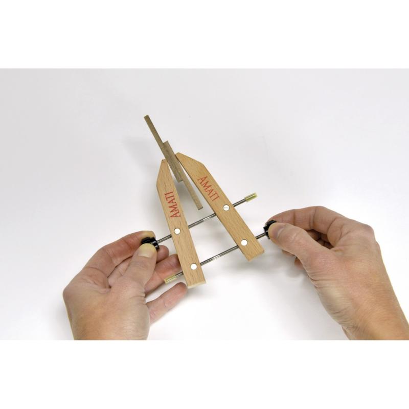Träklämma med justerbara träkäftar, perfekta för att hålla ytor som inte är parallella på plats.