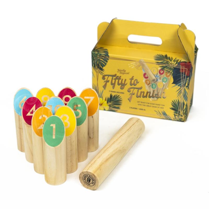 Tropiskt Nummerkubb (Fifty to Finnish) är ett roligt och strategiskt utomhusspel från Finland som tränar precision, taktik och snabbhet. Spelet passar både barn och vuxna och erbjuder timmar av underhållning i trädgården eller på picknicken.