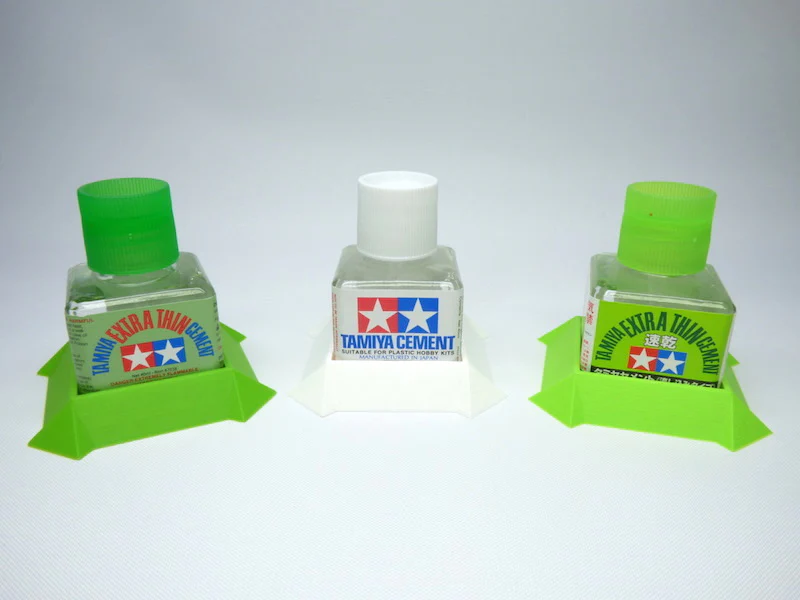 - Ultimate Glue Bottle Holder är en specialdesignad hållare för Tamiyas limflaskor, vilket gör det enklare att förvara och använda lim under modellbyggnad och liknande projekt.