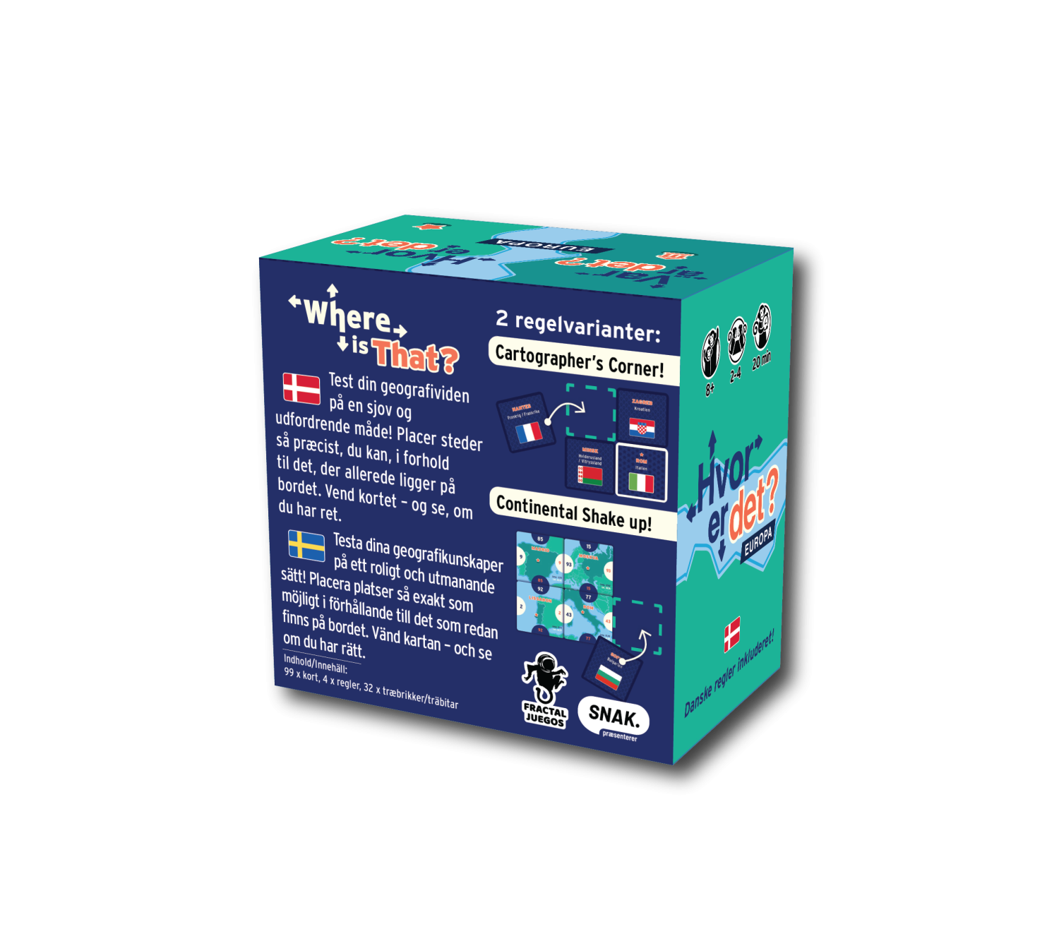 Where is that? Europe (Svenska/Danska) är spelet som gör geografi till ett spännande äventyr. Vet du exakt var Moldavien ligger i förhållande till Rumänien, eller vilken ordning länderna vid Adriatiska havet kommer i? Här sätts dina kunskaper på prov på ett helt nytt sätt!